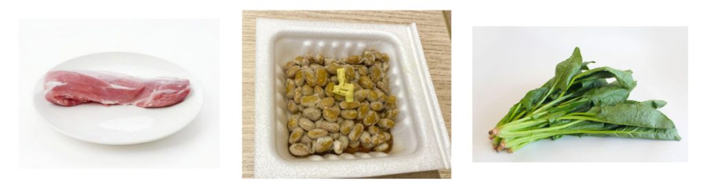 ビタミンB1を多く含む食材:豚肉、納豆、ほうれん草