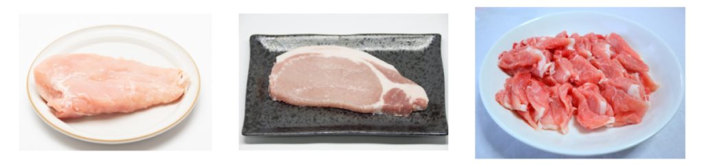 イミダペプチドを含む食材:鶏むね肉、豚ロース肉、豚もも肉