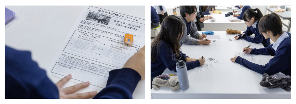 育児ママ・パパの“ドキドキ”な瞬間トップ3を映像で再現した「AI動画」のパートでは、最新のAI技術によるリアリティある映像を上映。生徒たちは、「自分ならどう感じるか」「その状況で何ができるか」を主体的に考えるきっかけを得た様子だった。