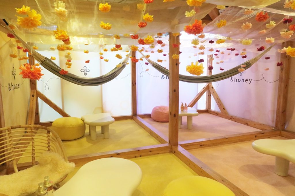 他にも浴室内には&honeyのシャンプー、トリートメントなどのバスセット、さらにパウダールームにも期間限定で&honeyのスキンケア商品が出そろう。また、リラクゼーションスペース「aura」ではハチミツを使用した限定メニュー「ハニーフェイシャルトリートメント」「あかすり&ハニードレナージュ」を実施している。