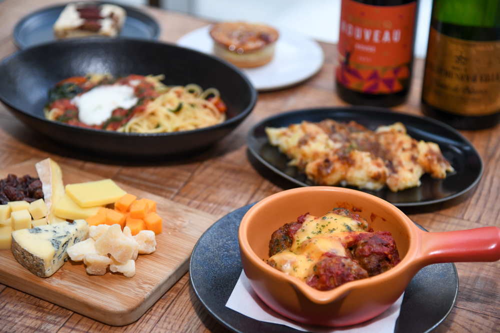 小林さんからは「ワインに合うのはもちろん、ご飯のおかずにもなりますし、ミートソースパスタにトッピングしたりパンに挟んだりしてもおいしいです」という提案が。実際に味わってみると、パンチの効いた肉団子と溶け合う3種のチーズが口の中で融合し、超濃厚な味わいが楽しめた。
