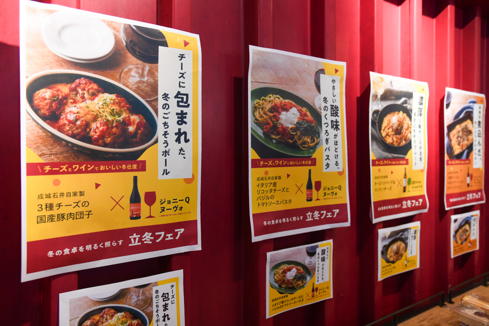 一方、同社が「立冬ヌーヴォ」と称して3年前から発売している『ジョニーQ ヌーヴォ2025』(1859円/750ml)は、本フェアに向けてチーズに合うブレンドで仕上げられたオーストラリア産赤ワイン。空輸ではなく船便で運ぶことで手頃な価格を実現しているのもポイントで、『成城石井自家製 イタリア産リコッタチーズとバジルのトマトソースパスタ』との組み合わせでは「ジョニーQ ヌーヴォの特徴である新酒らしいフレッシュさと奥深い熟成感が、本商品のトマトソースとバジルから感じられるフレッシュさやリコッタチーズの旨味にマッチしています」など詳しい説明があった。