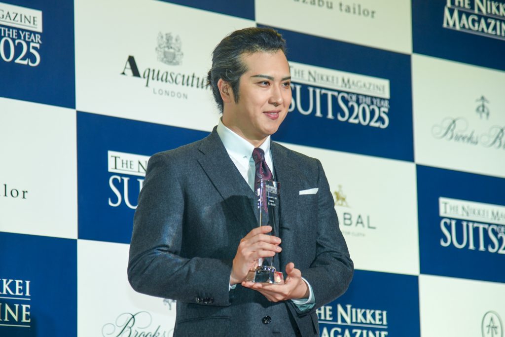 日本経済新聞社 メディアビジネス ライフスタイルサイト「THE NIKKEI MAGAZINE」が主催する「SUITS OF THE YEAR 2025」の授賞式が11月12日に東京都内で行われた。8回目を迎える今年は「サステナブル」をテーマに4部門で受賞者を選出。アート&カルチャー部門で受賞した歌舞伎俳優の尾上松也は「もっとスーツが似合う男になっていかなければならないと身の引き締まる思い」と語り、スポーツ部門で受賞した競泳選手の池江璃花子もトロフィーを片手に喜びを表現した。