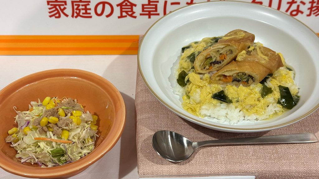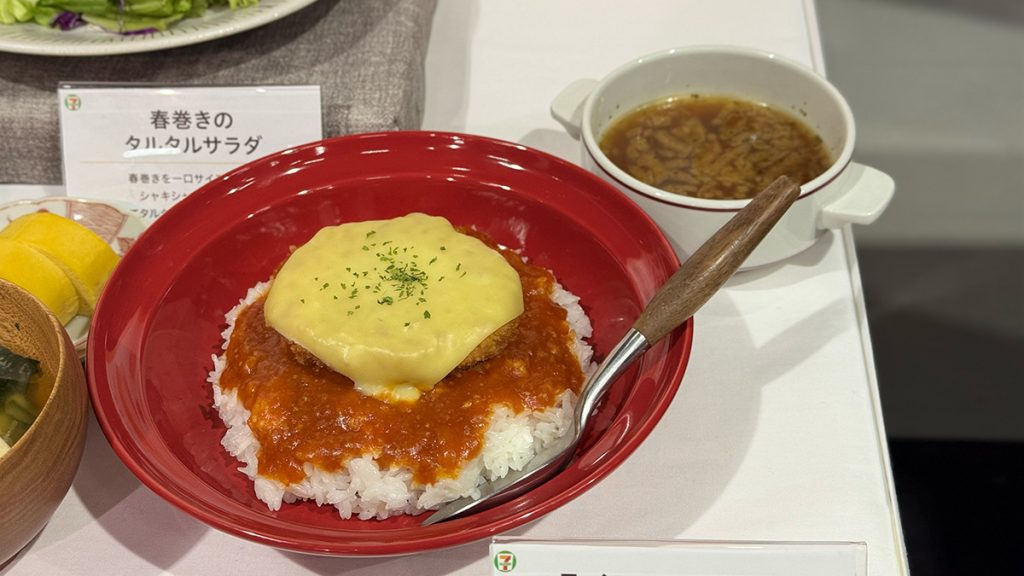ご飯の上に五目春巻きを乗せ、セブン-イレブンの「たまごスープ」で作った特製あんをたっぷりとかけた丼メニュー。食べ進めるうちに春巻きの皮があんに馴染み、食感の変化を楽しめる。