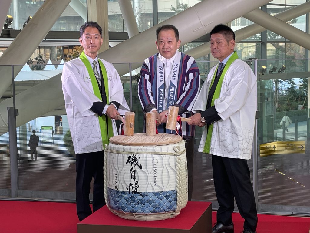 21日には、磯自慢酒造の代表・8代目蔵元の寺岡洋司氏らが登壇し、新酒の鏡開きセレモニーを実施。高輪ゲートウェイに集まった日本酒ファンの方々に、東京で一番最初に新酒「磯自慢 Standard 本醸造.新酒」が振る舞われた。また、22日から24日までの3日間限定で高輪ゲートウェイ駅構内2Fの「Eki Park」では、東日本・東海地域の特産品とともに、1日100本限定でTAKANAWA GATEWAY CITYオリジナルラベルの「磯自慢 特別純米」が販売される。