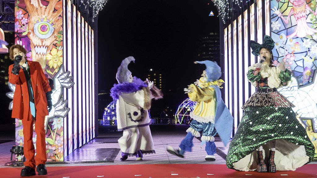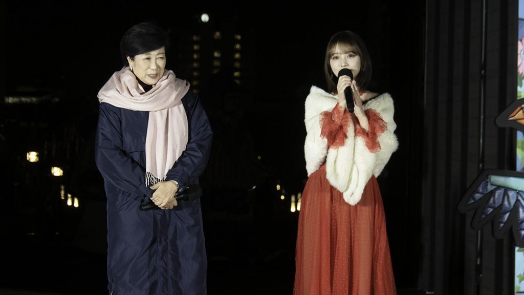 初日となる12月4日には、夢の大橋にて点灯式が執り行われた。式典には主催者である小池百合子東京都知事をはじめ、スペシャルゲストとして俳優・ファッションモデルの与田祐希さん、テーマソングを書き下ろしたアーティストのasmi(あすみ)さんとRin音(りんね)さん、クリエイティブを担当した特殊メイクアーティストの快歩(かいほ)さんらもが登壇し、華やかに開幕を祝った。