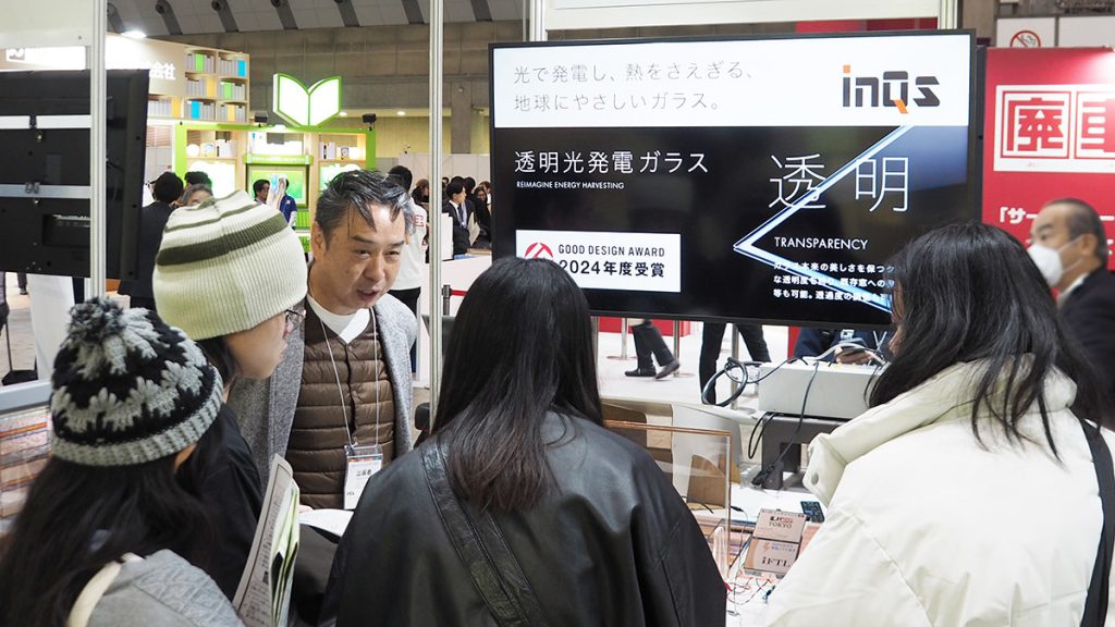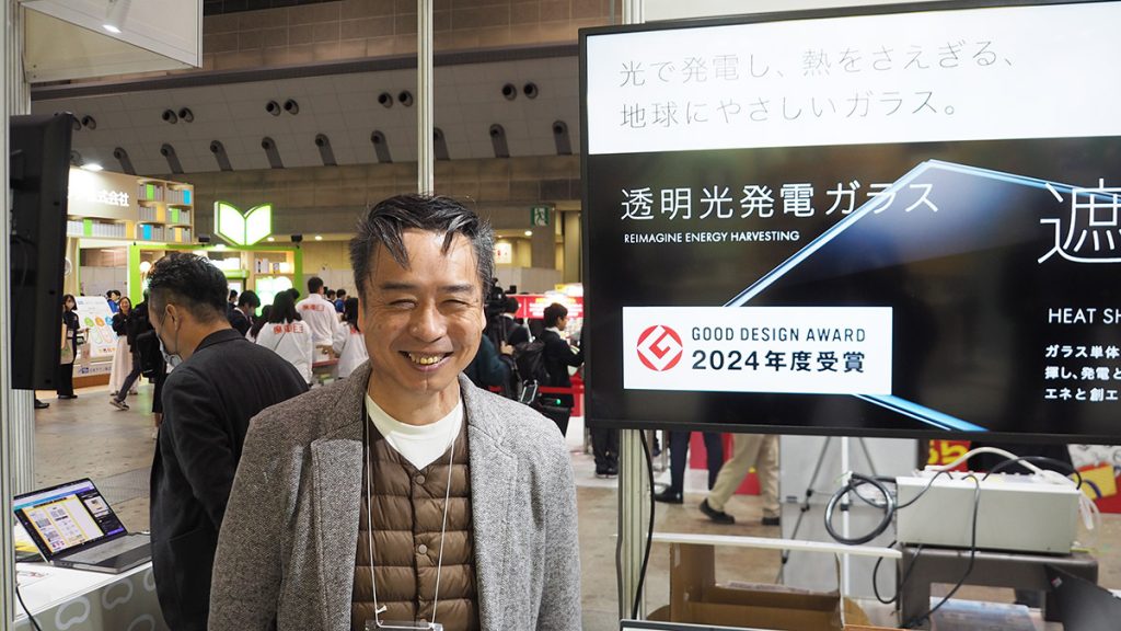 そしてもう一社、来場者の注目を集めていたのが、inQs(インクス)株式会社による「発電するガラス」だ。その革新的な技術について、inQs株式会社 取締役 事業本部 営業部 部長 中村陽和氏に詳しく聞いた。