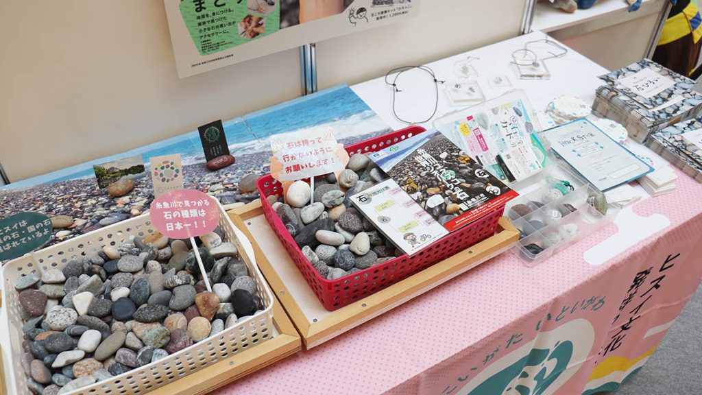 そんな糸魚川が打ち出したテーマは「石のまち」。約4億年前のヒスイをはじめ、海岸には多様な石が転がる。今回の展示の目玉は、単なる石の展示にとどまらない「体験」の提案だ。駅前で販売されている「石ひろいキット」は、ケースと図鑑がセットになっており、観光客は自ら海岸で石を探し、拾い、学ぶことができる。