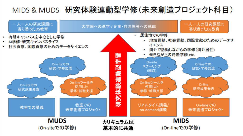 2019年からデータサイエンス学部(通称:MUDS)を設置し、同分野で確かな研究実績を有する武蔵野大学。その実績を基盤に、この度新たに通信制の「国際データサイエンス学部(通称:MIDS)」が開設される運びとなった。この日、現・データサイエンス学部の学部長で新学部の学部長に就任予定の清木康教授から語られた同学部のコンセプトは「さまざまな国際的な課題、あるいはローカルな課題に対して、AIをはじめとするデータサイエンスがどう立ち向かうかを思考する学部」。なかでも大きな特色として紹介されたのは、1年次後期から3年次に履修する「未来創造プロジェクト」で行われる「研究体験連動型学習」だ。