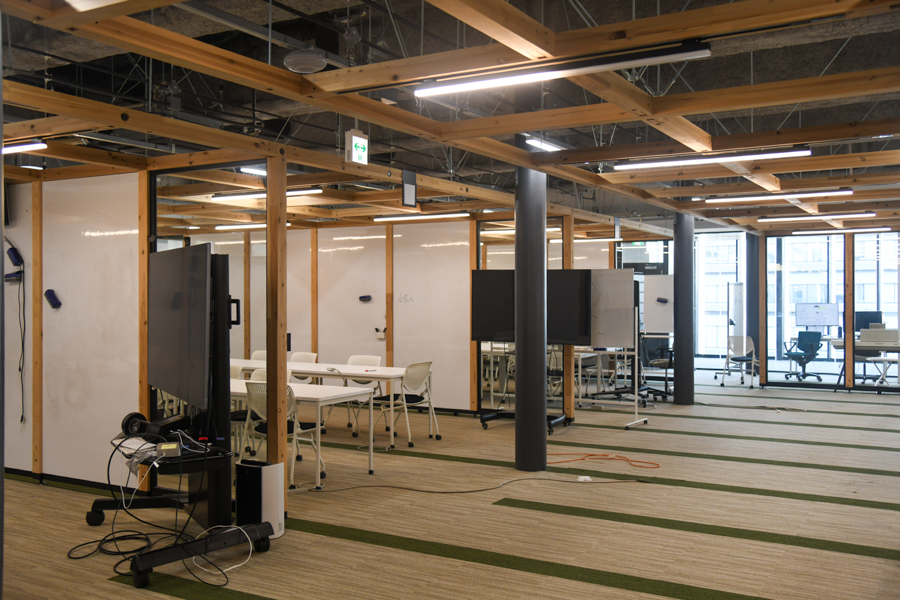 そのほか、この日は通学制データサイエンス学部の現役生と海外協定校生が自らの研究を発表。国際的に開かれた同大学のデータサイエンス研究の取り組みが披露されたほか、発表会後には通信制の新学部生も未来創造プロジェクトの対面教育時に利用できるプロジェクトルームが公開され、各研究室の仕切りなく、研究領域、学年の分け隔てなく交流が可能なオープンスペースに、個人の早い成長やイノベーションの誕生を促す同大の気風を感じることができた。