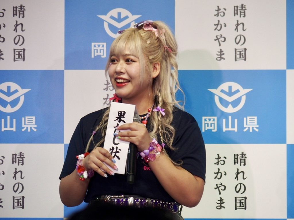 ここで、岡山県 総合政策局 知事室長の森隆之さんより、“おかやま晴れの国大使”の座をかけたバトルの結果発表が行われた。持っているたすきが一つだけ、ということで緊張感が漂うも、無事にウエストランドが大使の座を死守した。森さんは「正直ダンスを見て悩みました。でも、(任期の)期間中です」と、まさかのオチで会場には笑いが。また、「りーちむさんには、これからも岡山を、そして晴苺をもっともっと愛していただいて、いつかは…あるかな!?」と期待を込めたメッセージを送った。りーちむさんは「今回は残念だったんですけど、岡山愛は負けないので!もっともっと動画とかで岡山のPRをできたらいいなって思います」とコメントした。