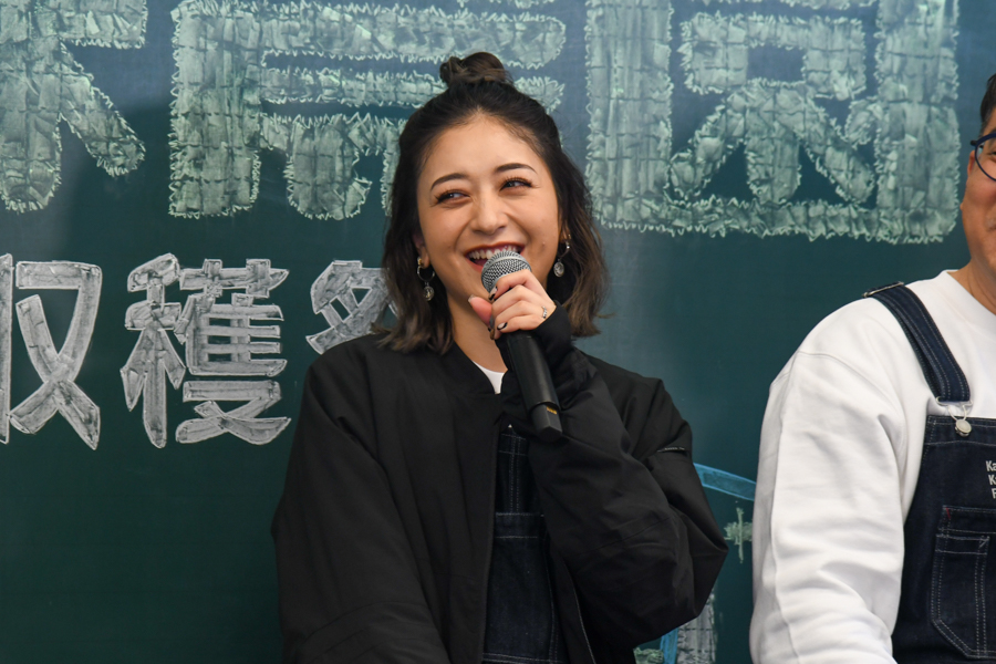 続いて「かぶ×株農園」の農園長に就任した“投資家の桐谷さん”こと将棋棋士の桐谷広人に加え、ゲストとしてみちょぱことタレントの池田美優とお笑い芸人のなすなかにしがデニムの農園ルックで登場。